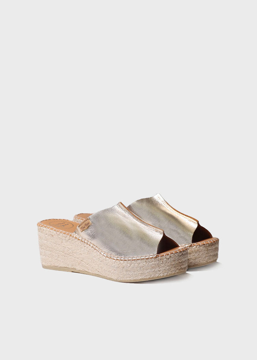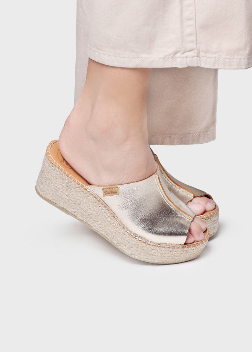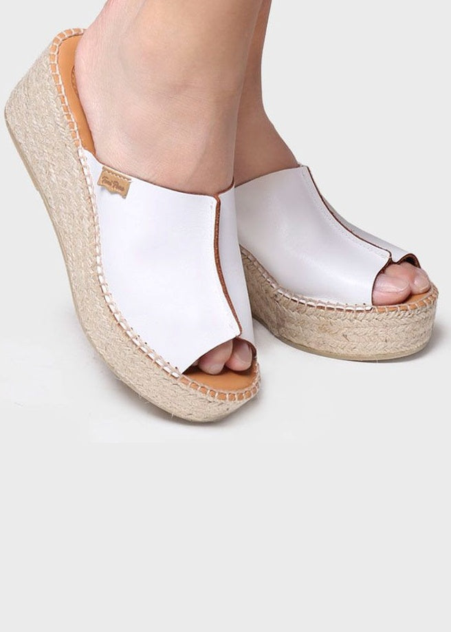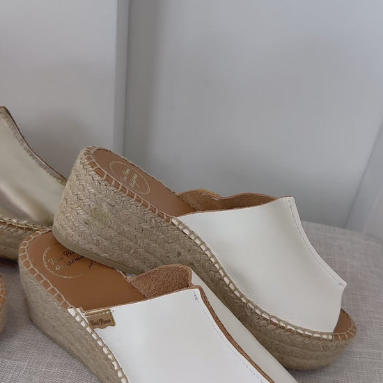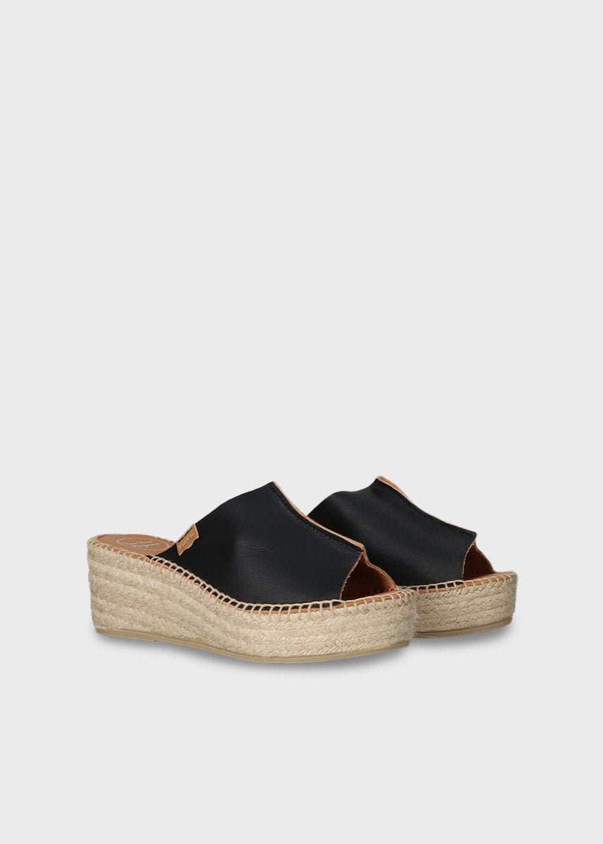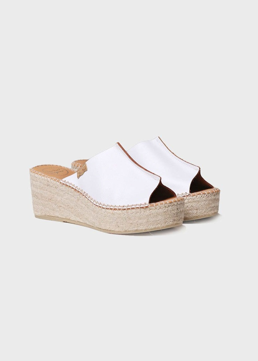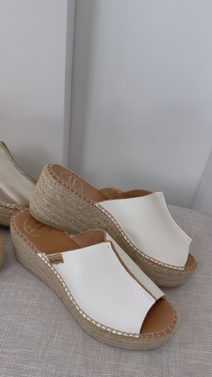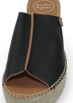 This wedge espadrille is made of leather in plain colours. The jute wedge has a total height of 7 cm, of which 4 cm belong to the heel and 3 cm to the platform. The base of the sole is made of non-slip rubber. The leather insole is cushioned for extra comfort. The leather and sole are hand-stitched together with cotton thread. This model fits true to size; if you are between two, we recommend choosing the larger size. (Copyright Toni Pons 2023)